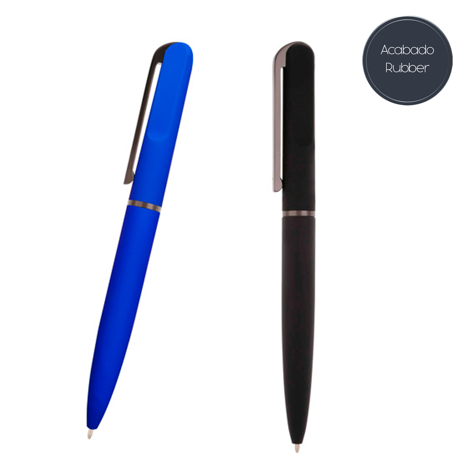 Bolígrafo con acabado rubber, clip metálico y mecanismo retráctil.