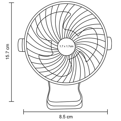 Ventilador de escritorio ajustable para dirigir el flujo de aire, con pinza de sujeción y botón de encendido/apagado. Incluye cable tipo C.