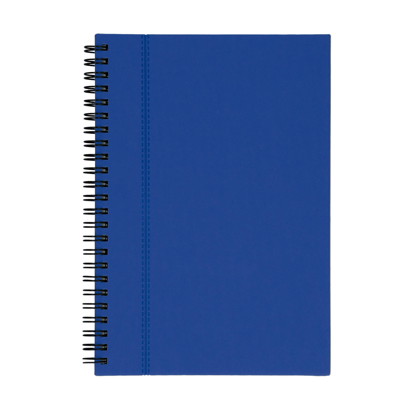 Libreta de poliuretano reutilizable con espiral metálico y 50 hojas rayadas. Incluye bolígrafo y paño de limpieza, permitiendo eliminar el contenido fácilmente y aprovechar al máximo cada hoja.