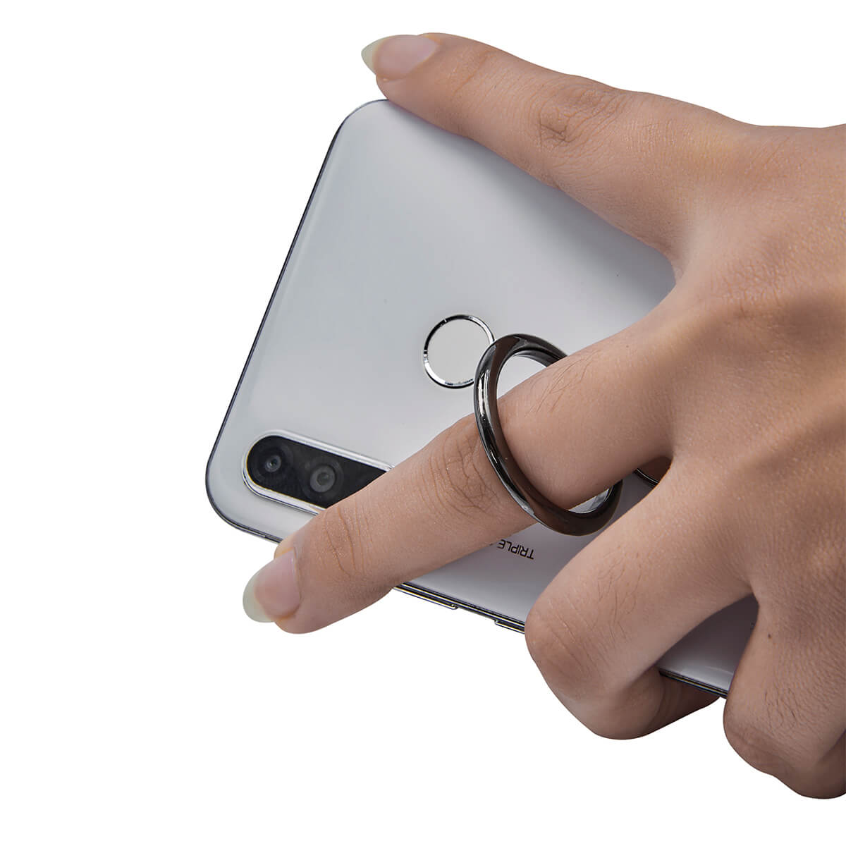 Anillo para smartphone con giro 360°, la base gira 180° para ajustar la visión horizontal o vertical. Incluye adhesivo para pegar directamente sobre el dispositivo (no apto sobre superficies rugosas o impermeables). – CEL 062