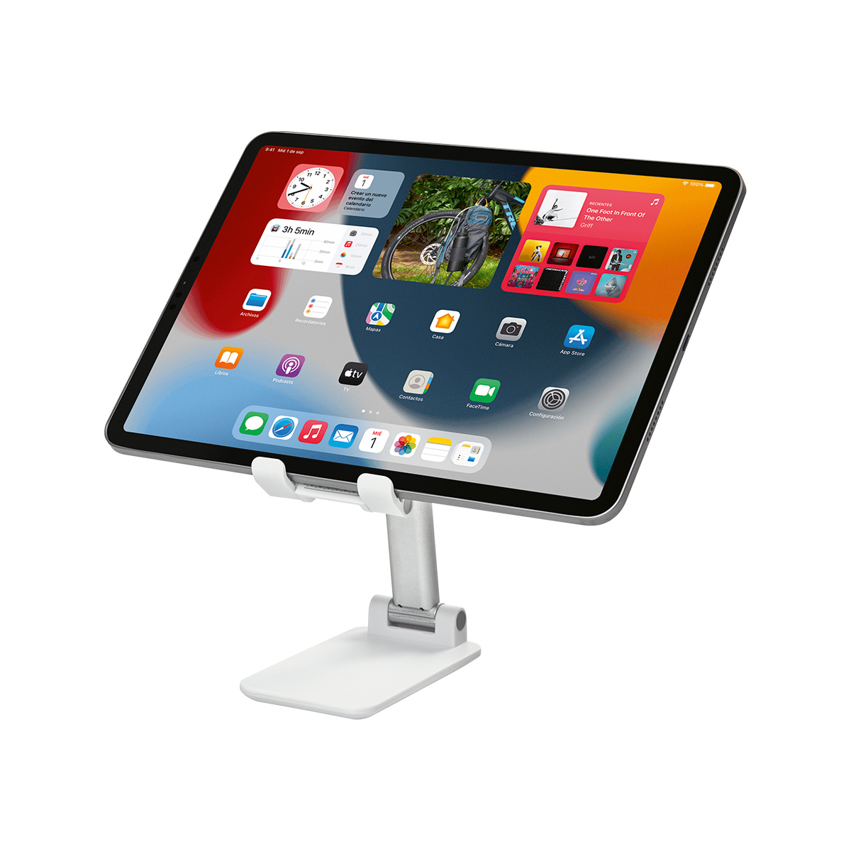 Soporte plegable. Soporte y base con material antiderrapante. Altura e inclinación ajustable. Desplegable a una altura máxima de 16 cm. – CEL 061