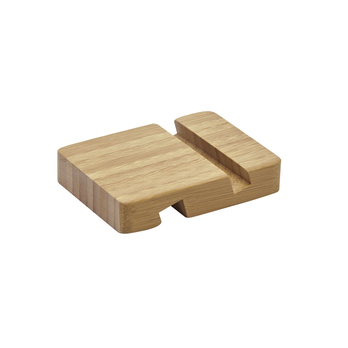 Soporte de bambú para smartphone o tablet. Incluye dos ranuras con diferente grosor para adaptarse a diversos dispositivos. El bambú es un producto natural el cual puede presentar variaciones en tonalidades y vetas. – CEL 060