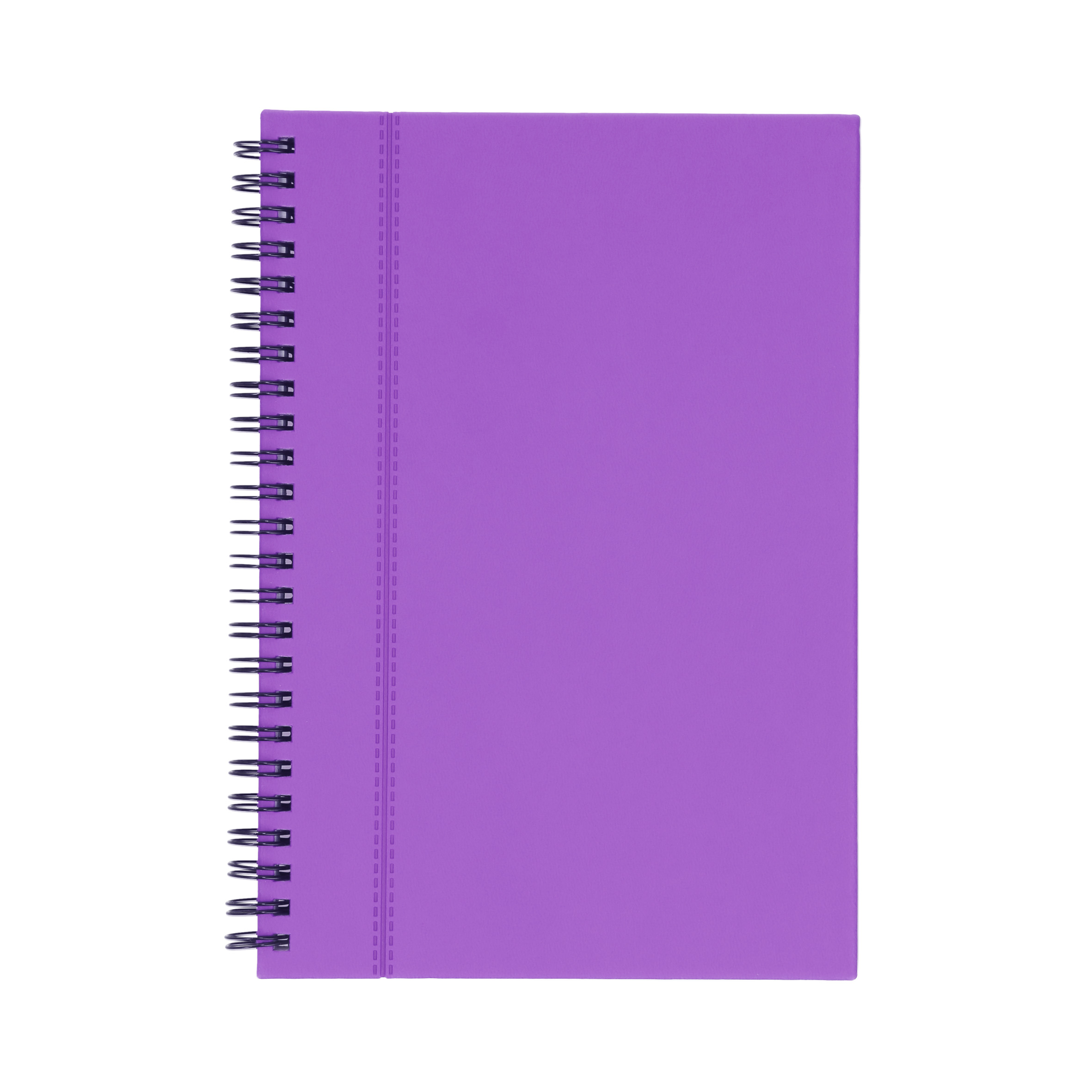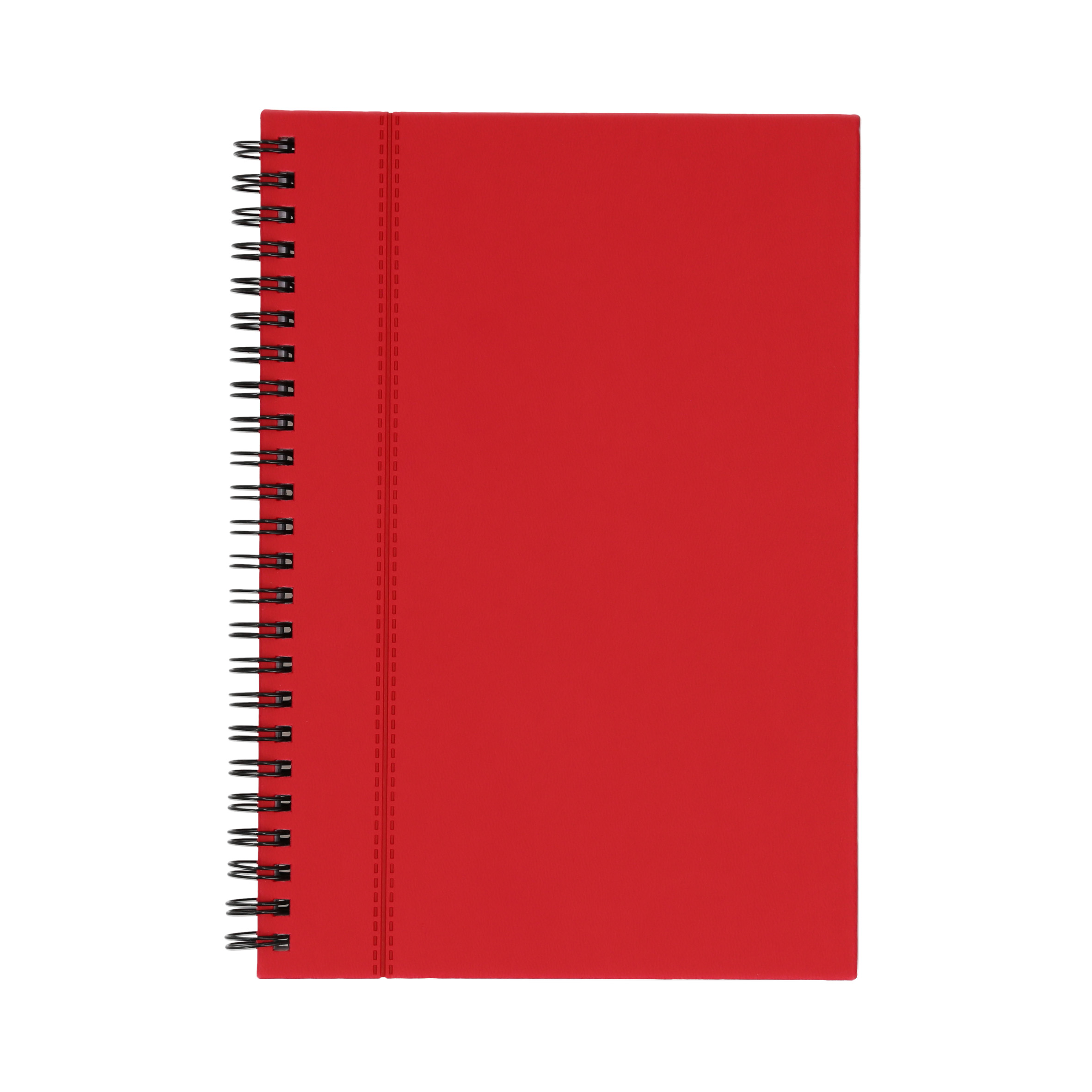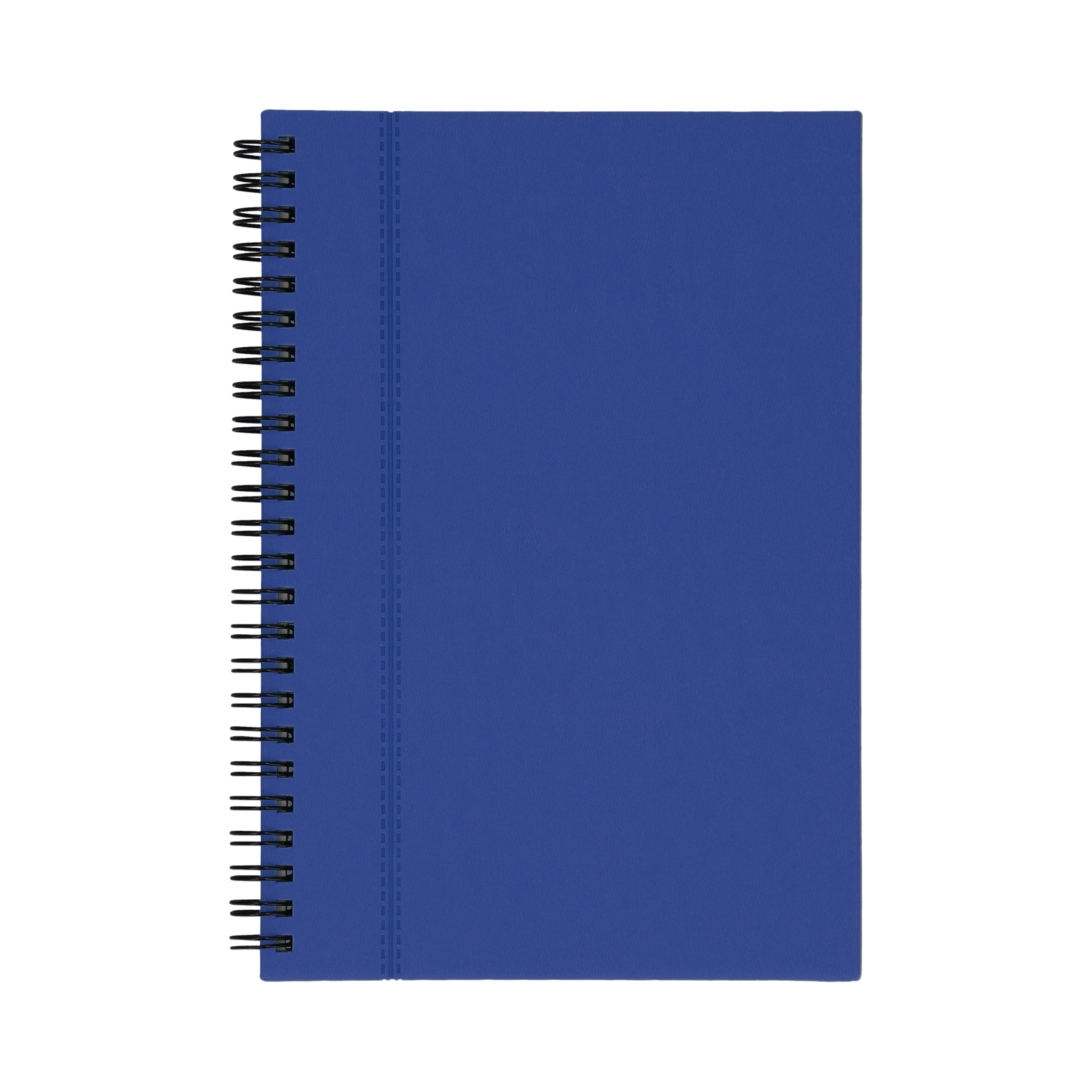 Libreta de poliuretano con espiral metálico y 70 hojas rayadas.