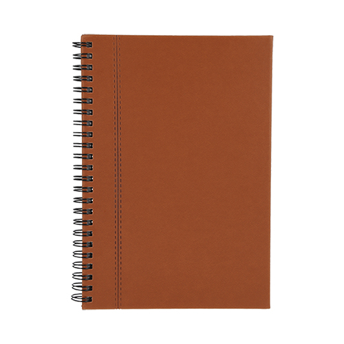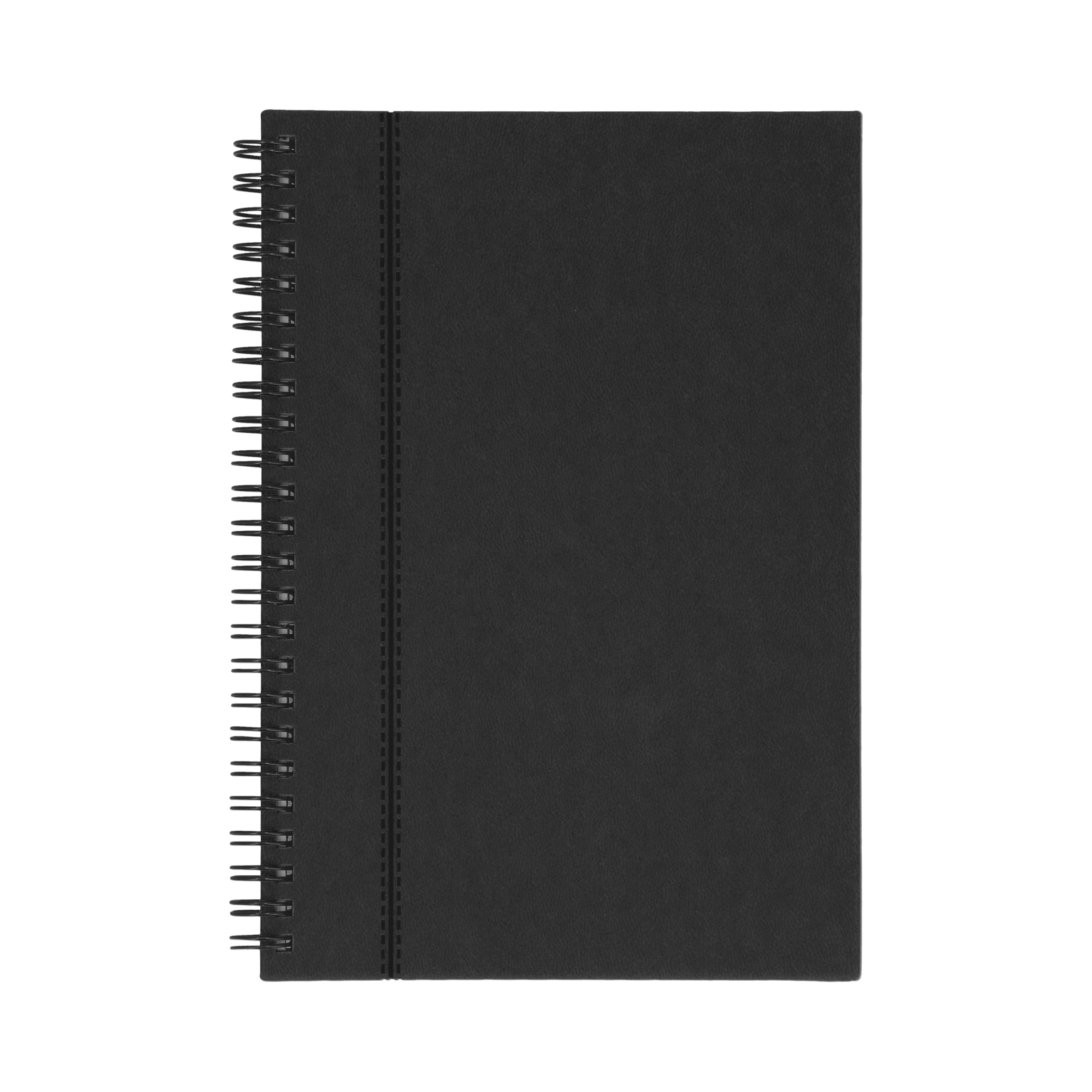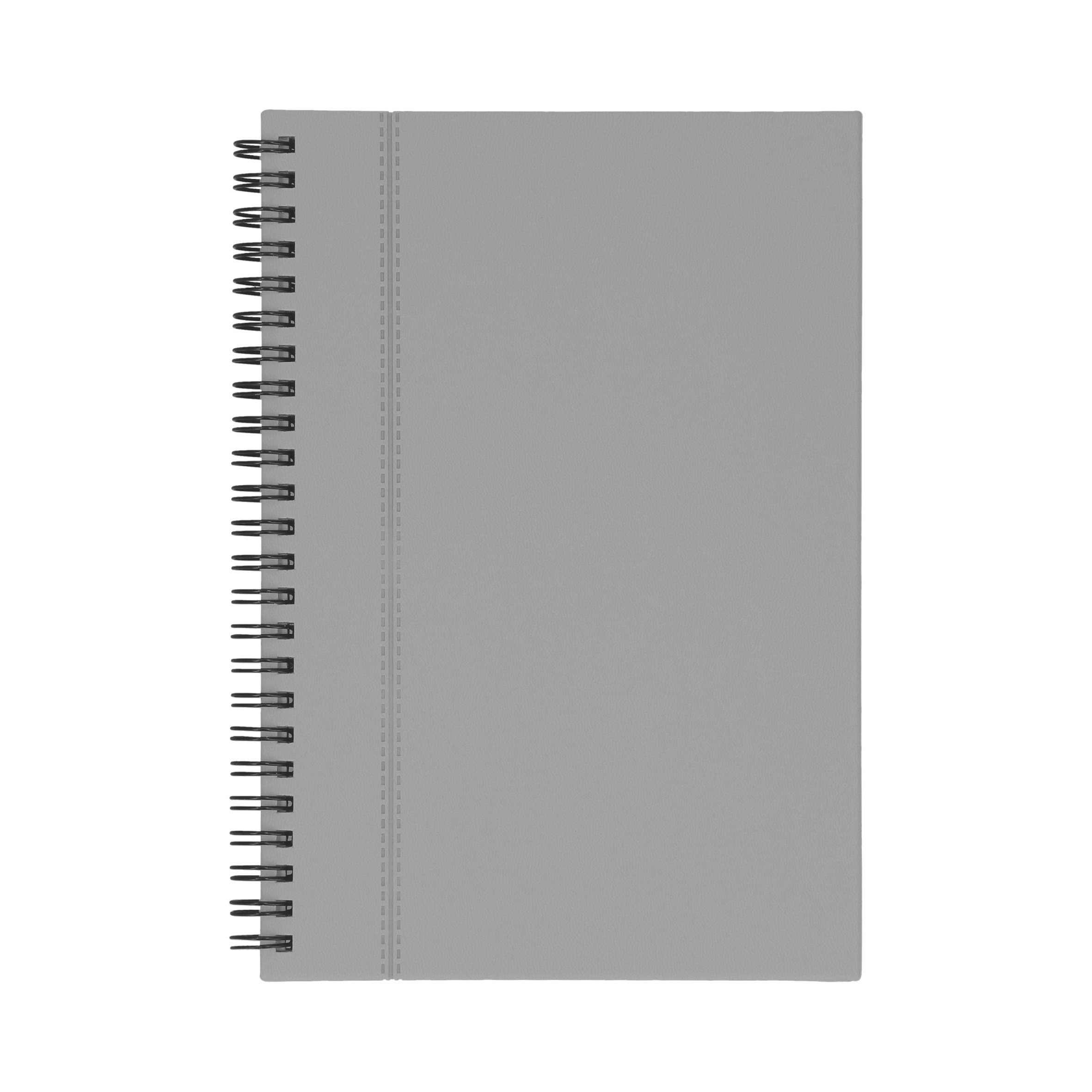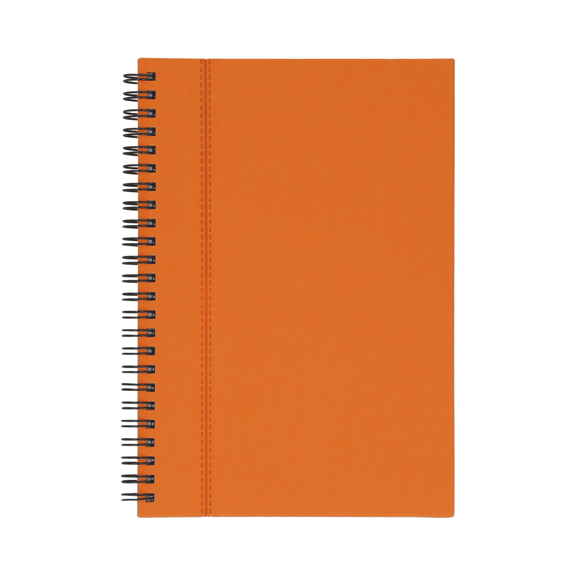 Libreta de poliuretano con espiral metálico y 70 hojas rayadas.
