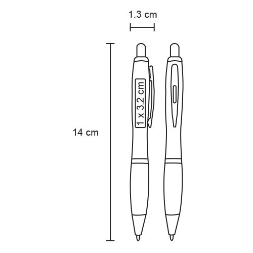 Bolígrafo plateado con clip metálico y grip de goma.