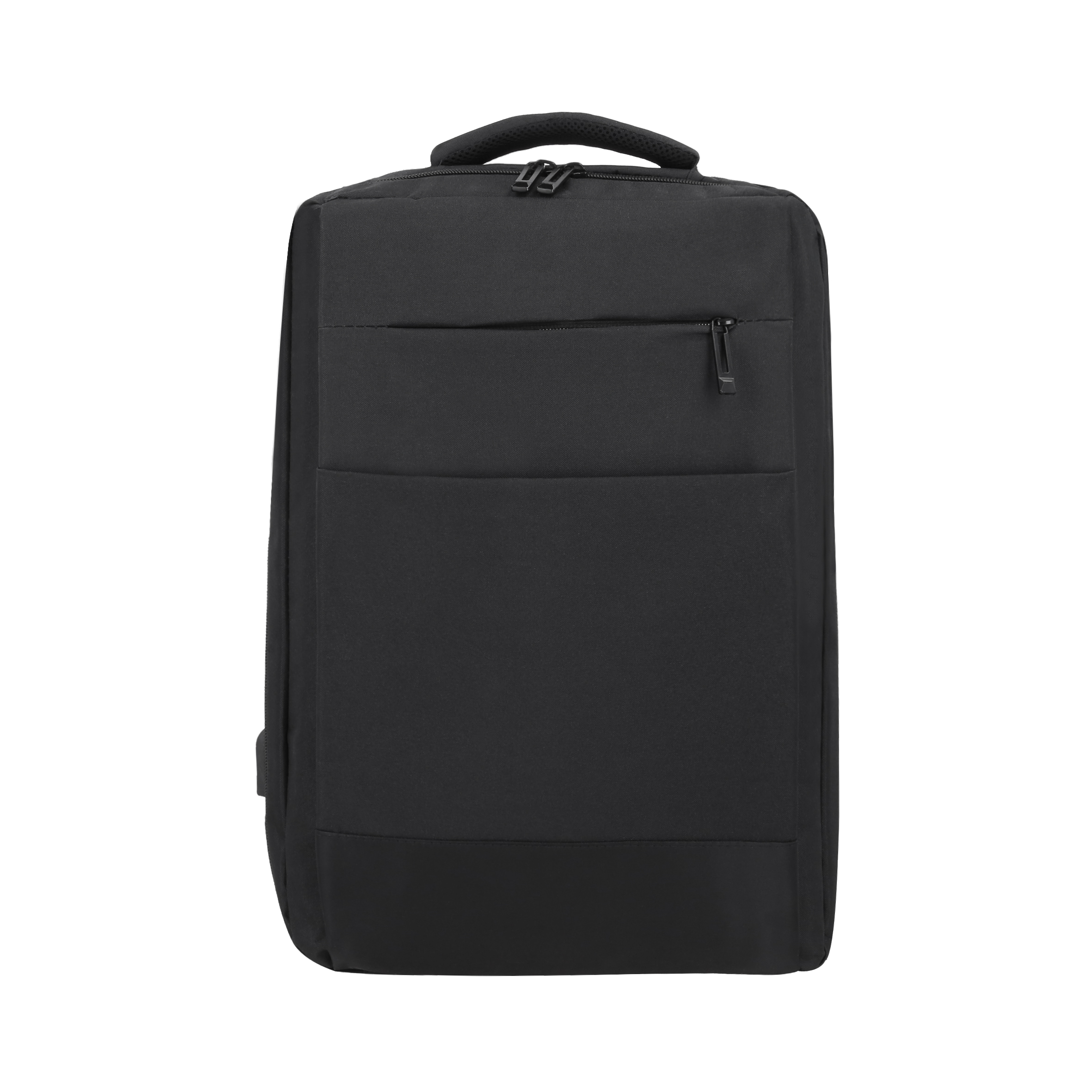 Mochila con abertura 360, 1 compartimento principal con resortes, bolsa frontal, organizador interno y porta llaves. Incluye bolsa de seguridad con porta laptop de 16″ y asa.