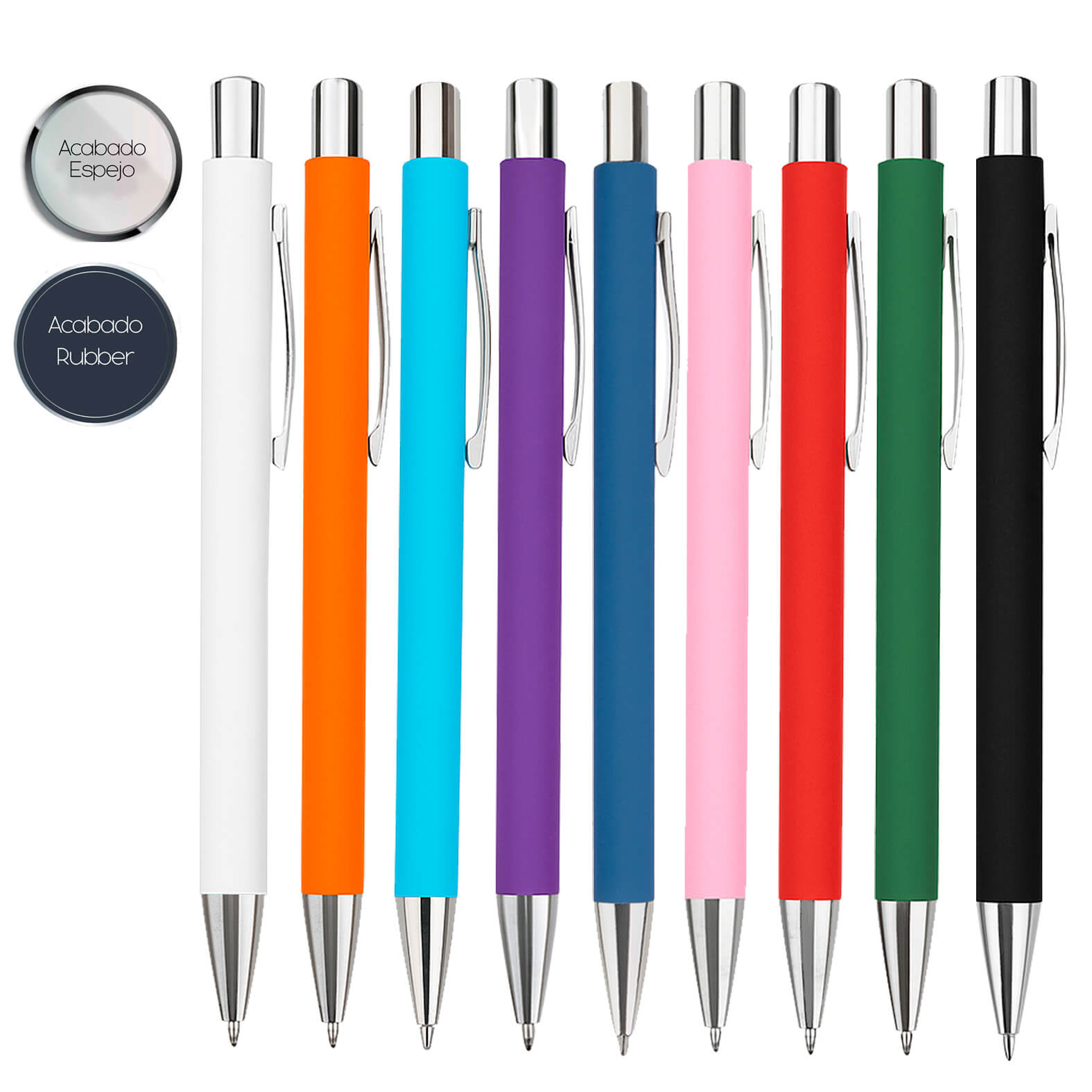 Bolígrafo metálico con acabado rubber, clip y mecanismo de click.