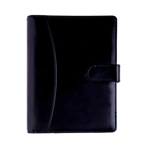 Carpeta de curpiel con block de 90 hojas de raya de 14.5 x 21 cm y arillo metálico.