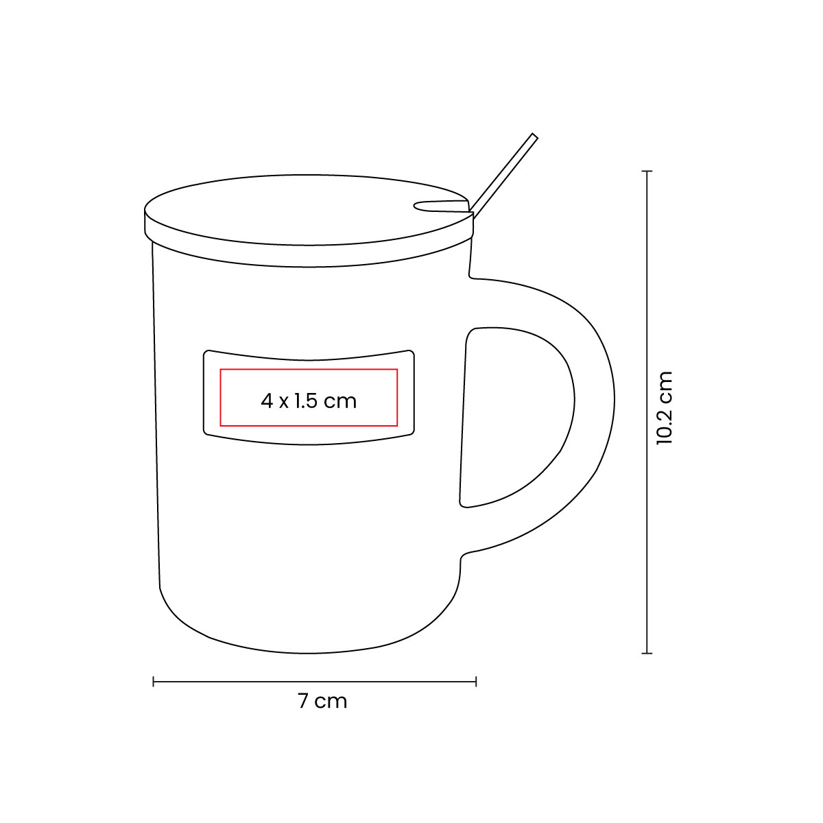 Taza de cerámica con placa metálica para impresión. Incluye tapa de bambú y cuchara metálica. Terminado en color glossy. Incluye caja individual. El bambú es un producto natural el cual puede presentar variaciones en tonalidades y vetas. – TAZ 055