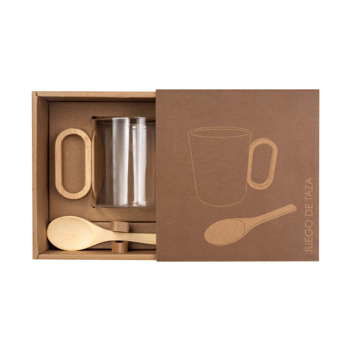 Taza de vidrio con asa de bambú. Su diseño minimalista combina materiales naturales con una estética moderna. Incluye una cuchara de bambú ideal para café, té o infusiones, todo presentado en un empaque kraft que realza su esencia orgánica. Capacidad de 13 Oz. El bambú es un producto natural el cual puede presentar variaciones en tonalidades y vetas. Incluye caja individual. – TAZ 074