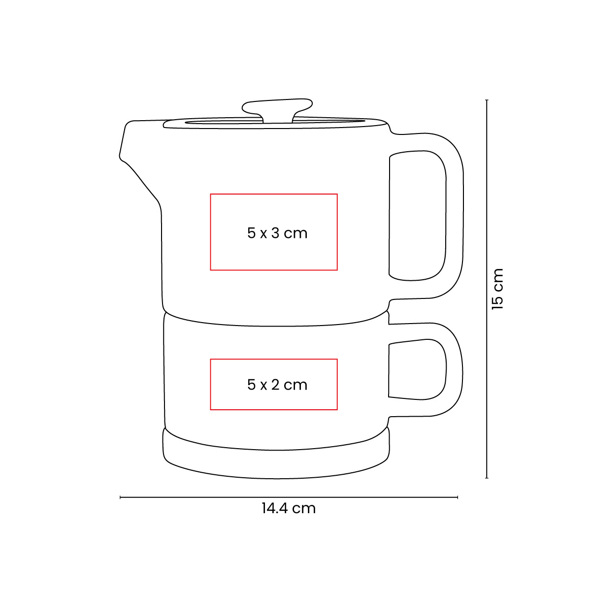 Juego de té de 4 piezas. Incluye tetera con filtro de acero inoxidable para preparar tus infusiones favoritas de manera fácil, taza en la parte inferior, que perfectamente combina con la tetera, y ambas se acomodan apiladas sobre una base de madera que añade un toque natural y sofisticado al diseño. Incluye caja individual. – TAZ 066