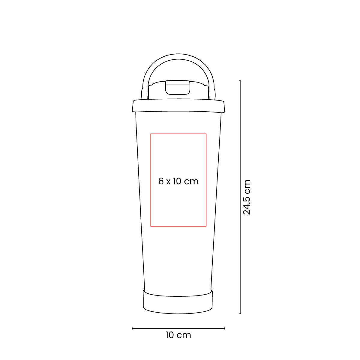 Termo doble pared. Cerrado al vacío. Pared interna y externa acero inoxidable. Terminado tipo rubber que lo hace suave al tacto. Su tapa versátil con cierre de rosca te permite disfrutar de tus bebidas de dos maneras diferentes; por medio de su convencional sobre tapa con sistema push o bien, usando la ranura para popote con tapón. Incluye un popote con doble ancho de plástico, ideal para cualquier bebida. Además, cuenta con un cepillo, que te ayudará a mantenerlo limpio. Su diseño incorpora un asa que facilita llevarlo a todos lados y su base removible de silicón antiderrapante, evitará al máximo raspaduras. Mantiene la temperatura caliente por 6 hrs y la temperatura fría por 12 hrs. Capacidad de 24 Oz. Base de 7 cm de diámetro. Incluye caja individual. – TMPS 221