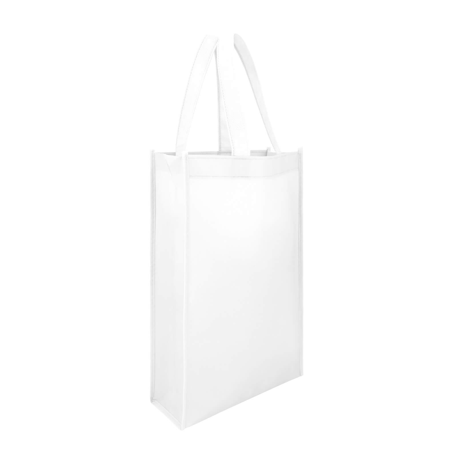 Bolsa ecológica de non woven de 80 gr/m2, laminada y termo sellada con asa de 18.5 cm.