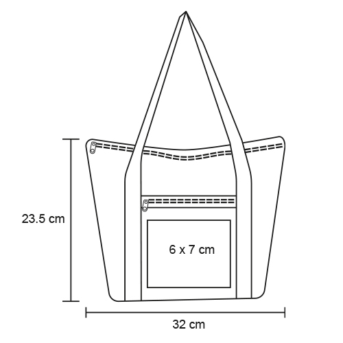 Bolsa de poliéster con 1 compartimento principal con cierre, uno frontal y asas.