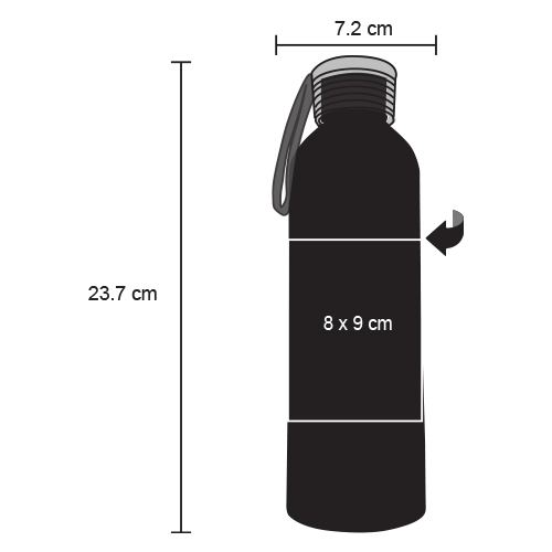 Cilindro de acero inoxidable, con tapa de plástico traslúcida enroscable y correa de silicón.