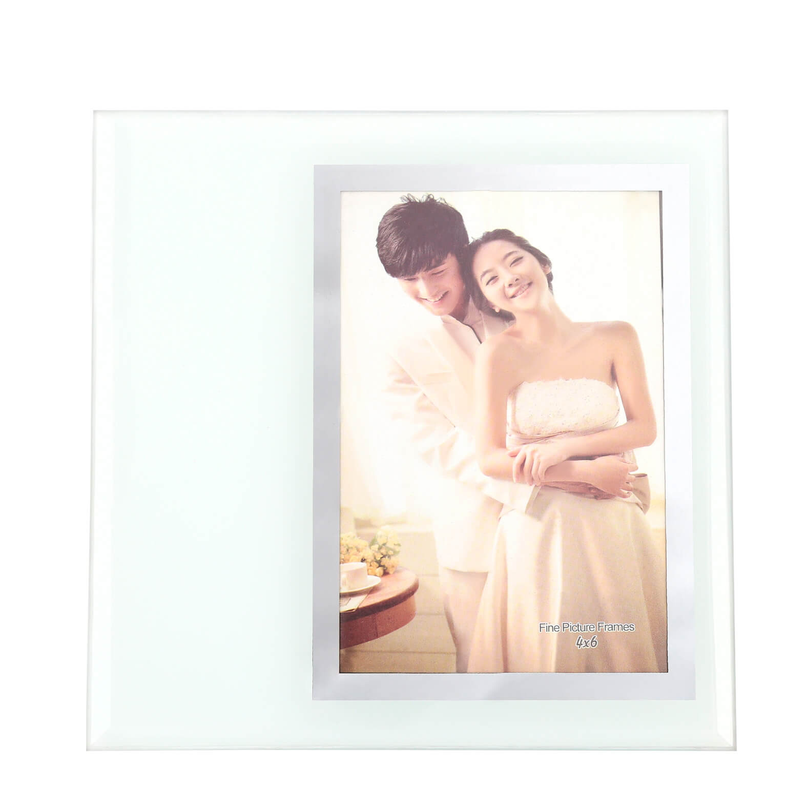 Portarretratos de cristal con soporte plegable. Medidas de espacio para fotografía: 9.7 x 14.4 cm.