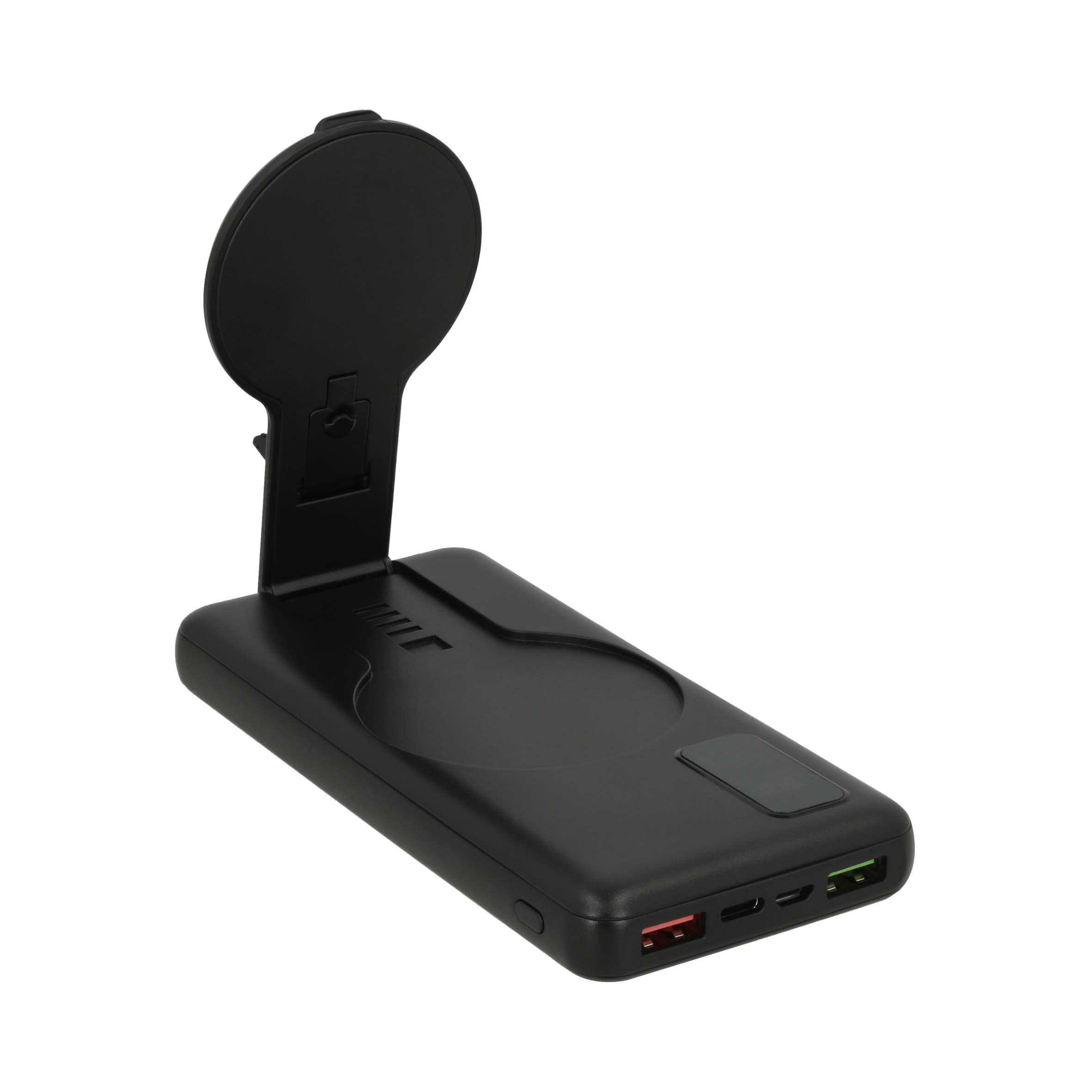 Power Bank wireless de 10,000 mAh con soporte para celular plegable, 2 entradas USB, 1 v5 y 1 tipo C. (Compatible con dispositivos con tecnología Qi).