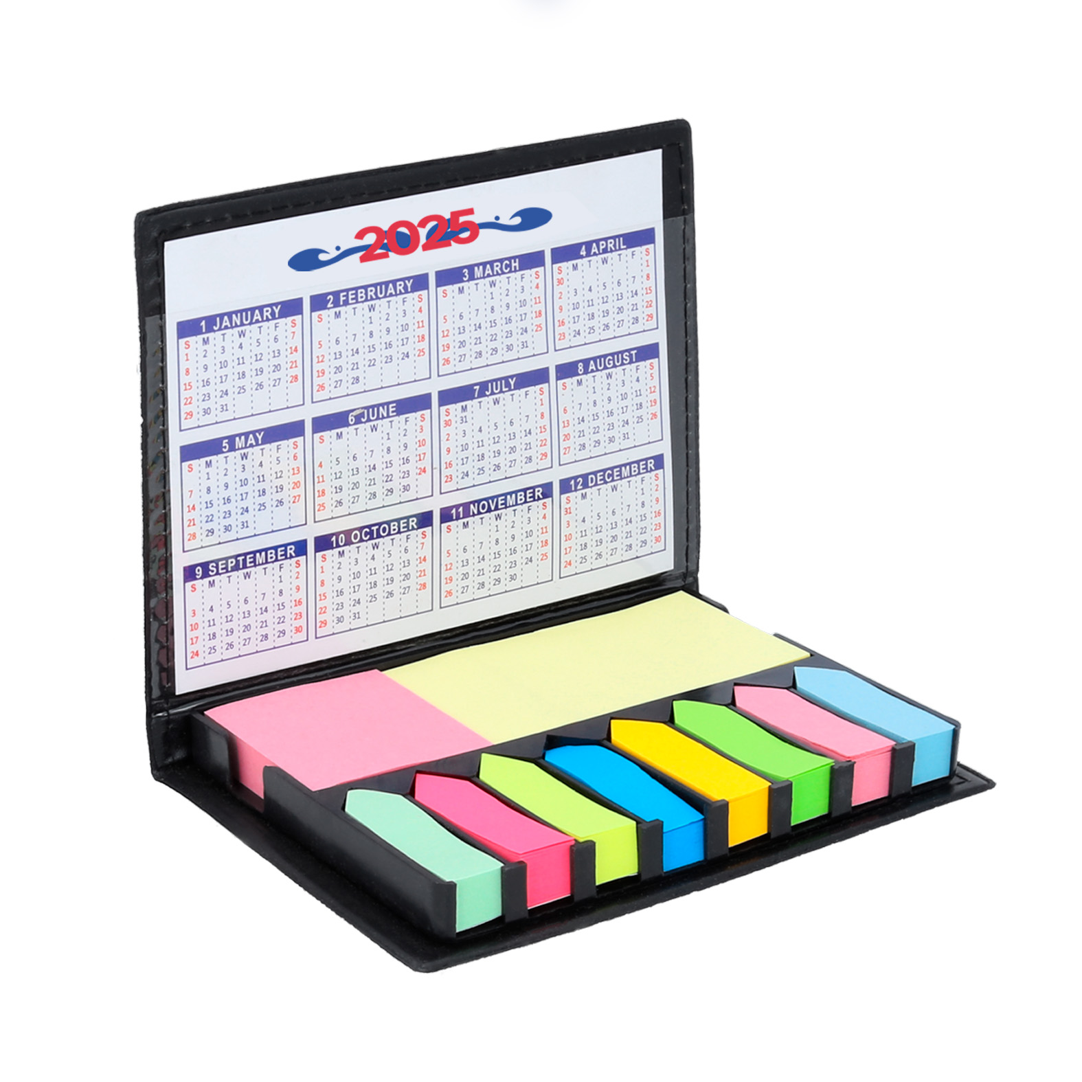 Estuche con notas y banderas adhesivas. Incluye calendario 2025 – 2026.