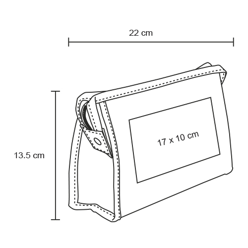 Cosmetiquera de poliéster con cierre superior, bolsa interior y dos compartimentos.
